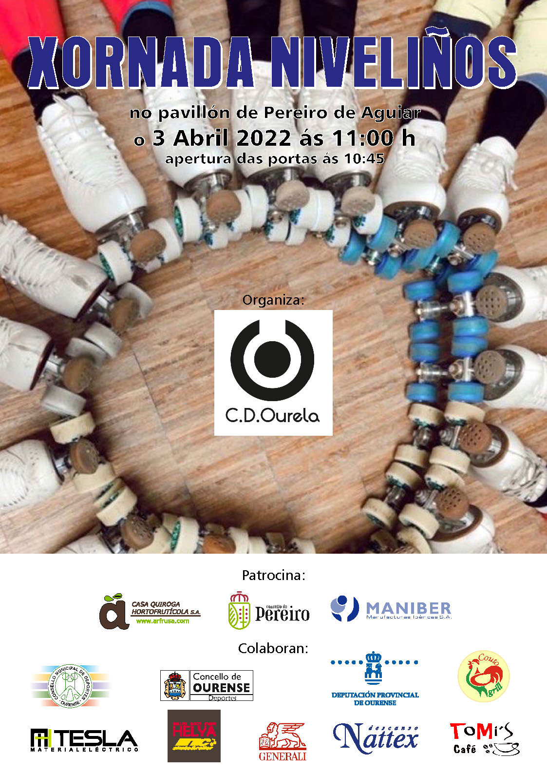 Confirmado!Xornada de Niveliños o domingo 3 de abril a partir das 11 da mañá. Teremos un bo ambiente no que veremos ás nosas patinadoras e patinador, varios sorteos e unha cantina na que poder repoñer forzas. Ide reservando o domingo 3 de abril.Esperámosvos!